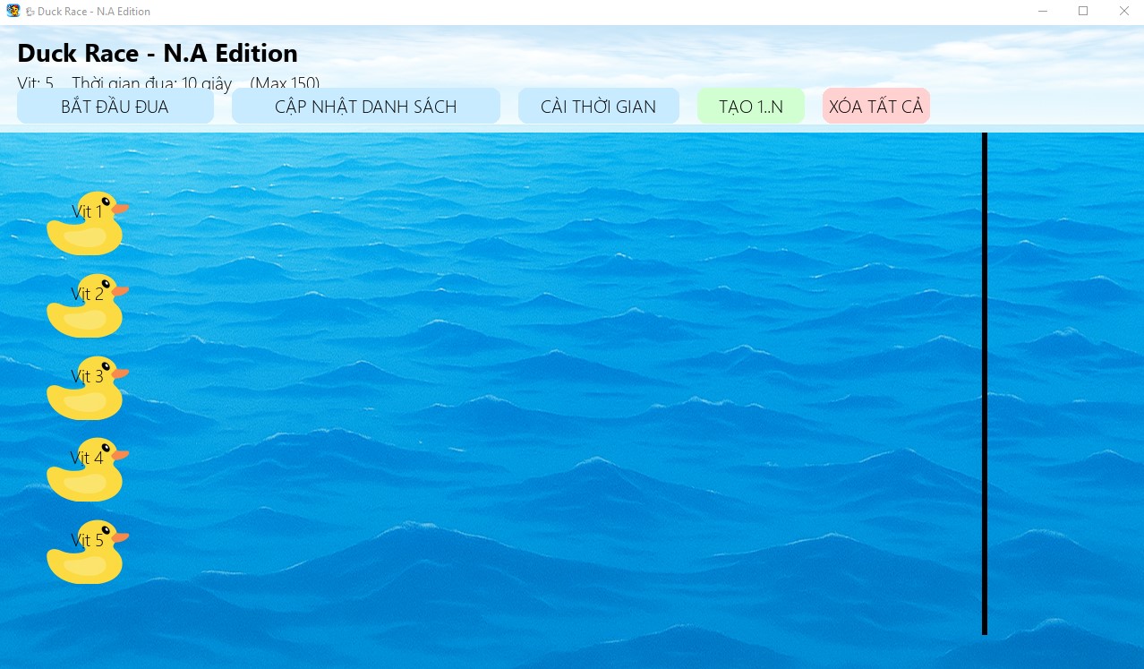 Ứng dụng mô phỏng cuộc đua vịt vui nhộn, hỗ trợ tạo danh sách và cài đặt thời gian linh hoạt.